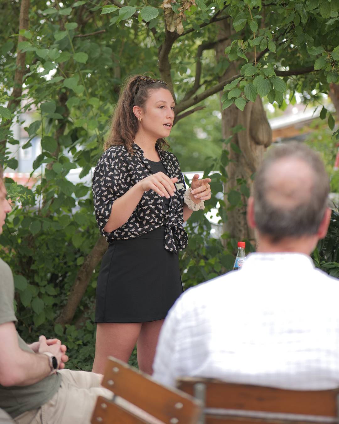 Gut gestärkt ging es weiter mit einem Stadtrundgang durch Nürtingen, angeleitet von Gina aus der Klima-Taskforce. Auf dem Weg zu lokalen Best-Practice-Projekten ergaben sich spontane Gespräche mit Ehrenamtlichen, die von ihrem Engagement berichteten. So wurde sichtbar, wie vielfältig Klimaschutzarbeit in der eigenen Stadt sein kann.