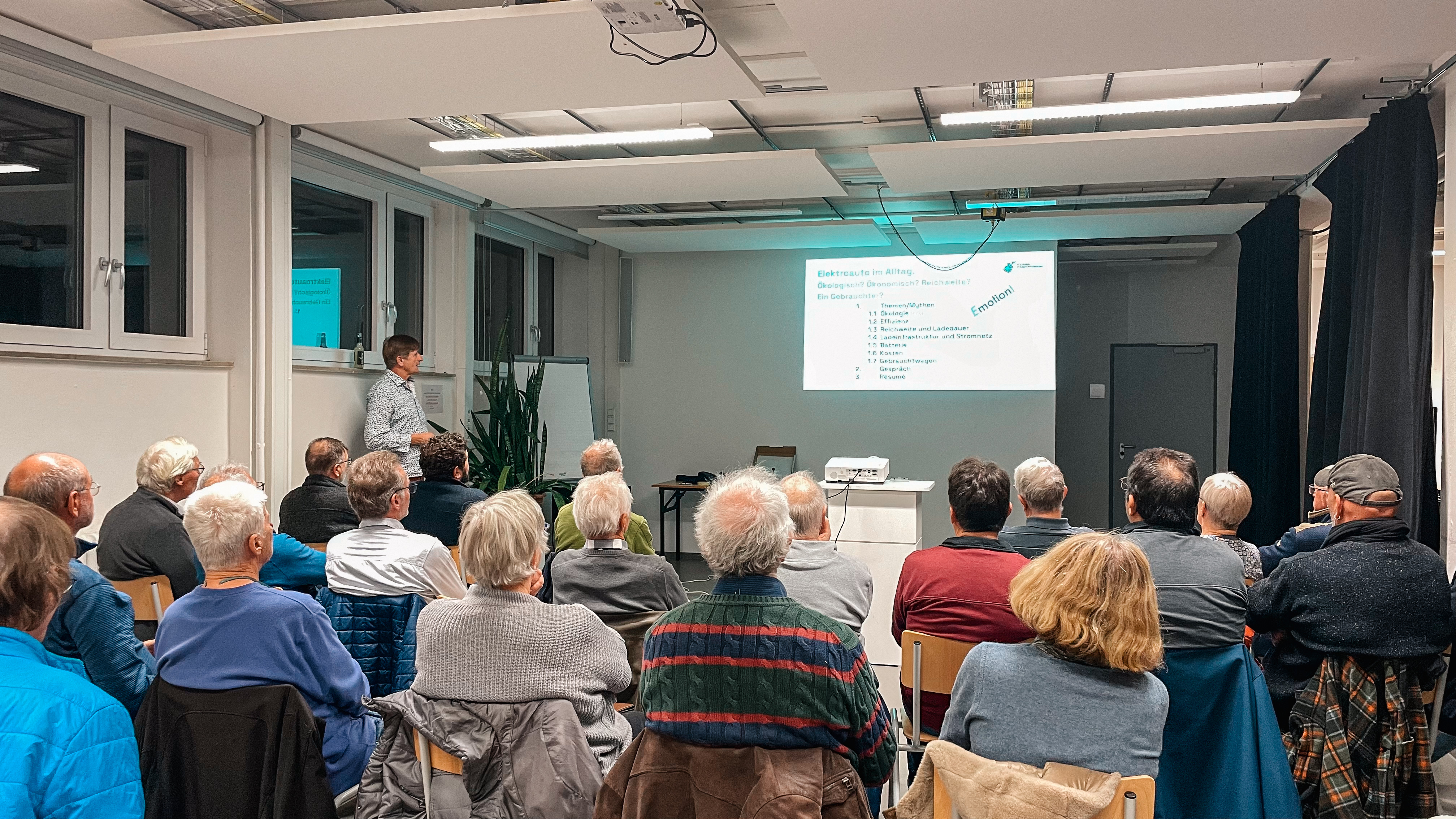 Auch technische Aspekte kamen nicht zu kurz: Batterielebensdauer, Ladezeiten und die Planung von Langstreckenfahrten wurden ausführlich besprochen. Der Abend bot fundierte Informationen, Raum für Austausch und viele Aha-Momente. Wir danken Hans Thaler herzlich für seinen engagierten Vortrag und allen Teilnehmenden für die spannenden Beiträge und Fragen.